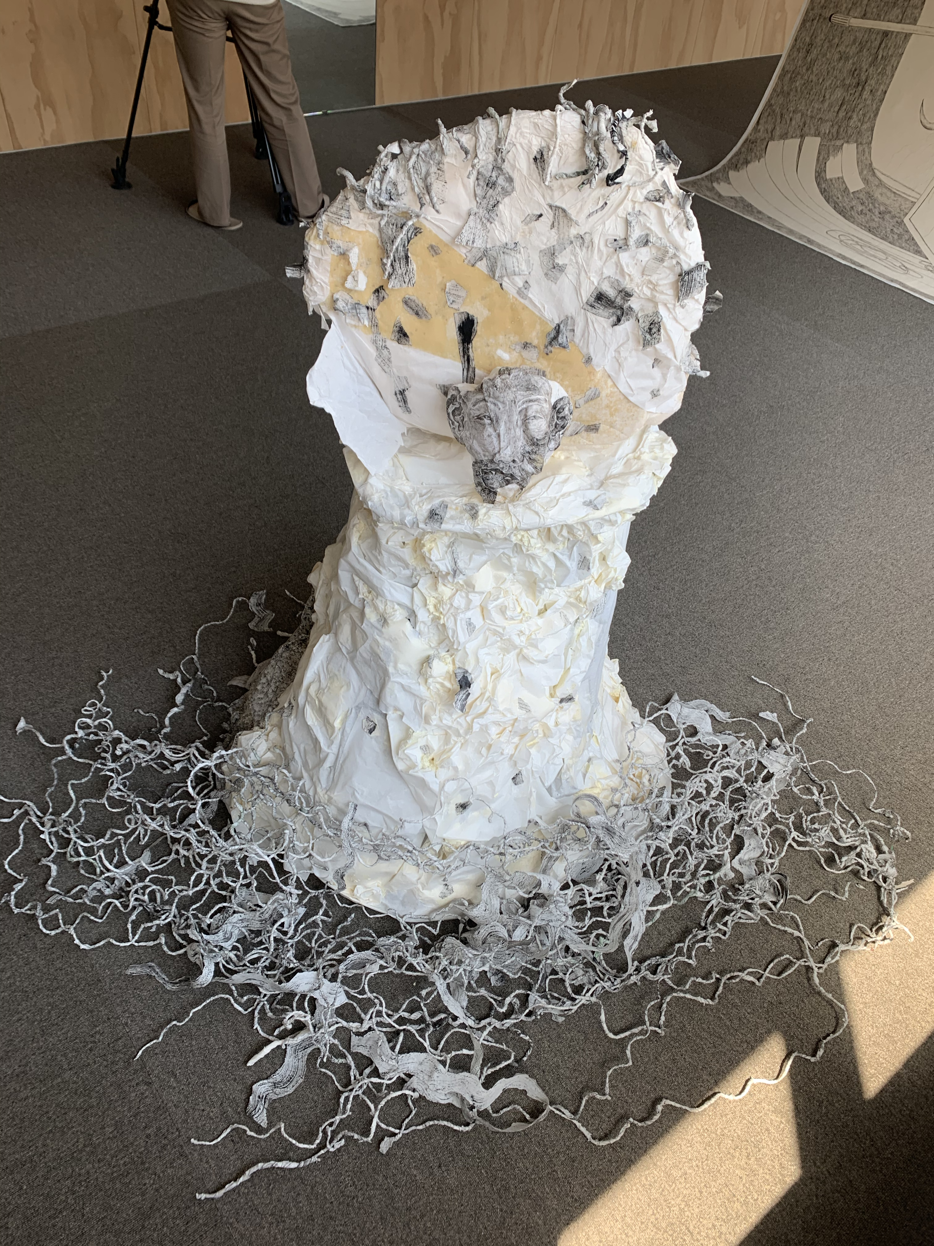 더 긴 곱슬머리를 한 알몸의 한 명이 있다, 장지에 유화, 213xc152cm, 2017