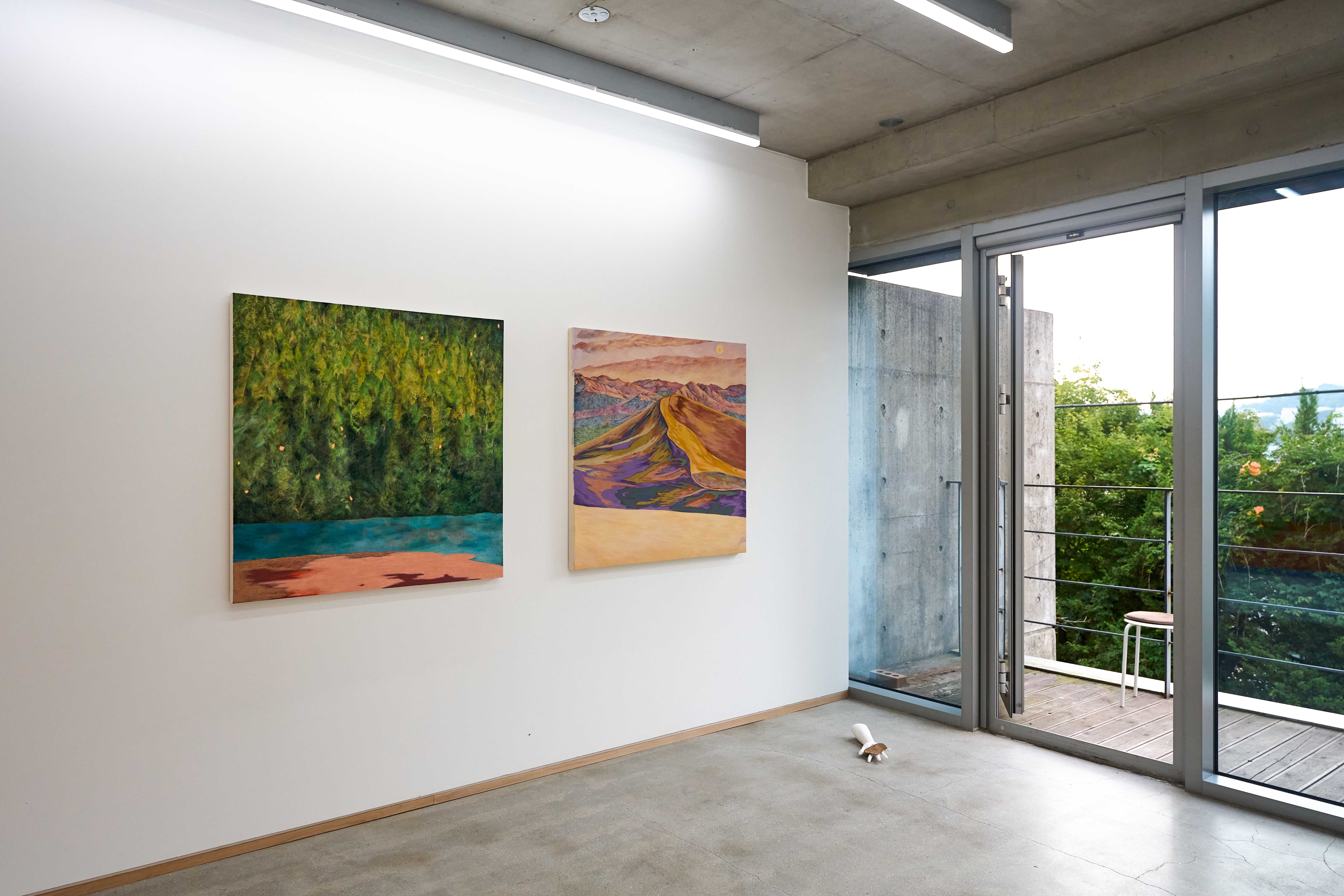 김도연은 언어의 구조를 뛰어넘는 몸의 서사로 너와 나의 ‘이야기’를 전달한다. 상상력의 가득한 신화의 세계는 화면을 가득 메운 세필의 선들로 재탄생했다. 인지 체계를 벗어나 작가가 감각하고 즉흥적으로 반응한 몸의 언어로 쓰인 회화적 표현은 마치 꿈의 서사와 같이 경계를 가로지른다. <피오피오타히(한 마리의 피오피오 새)>, <테와이코루푸푸(춤추는 모래)> 속 사람의 신체는 동물의 몸과 혼용되고, 성별의 구분 또한 모호하게 그려진다. 전경은 넓은 면으로, 후경은 세필로 묘사된 <산(알라딘)>은 해 질 녘의 따스함과 동틀녘의 어스름 그사이를 헤매며 미지의 공간으로 관람자를 초대한다. 어떠한 제약 없이 그려진 김도연의 인물과 풍경에는 약동하는 이상적 생명력이 가득하며 신체를 가득 메우는 심장 박동은 존재의 유일한 징표로서 나의 실재를 외연으로 넓힌다.