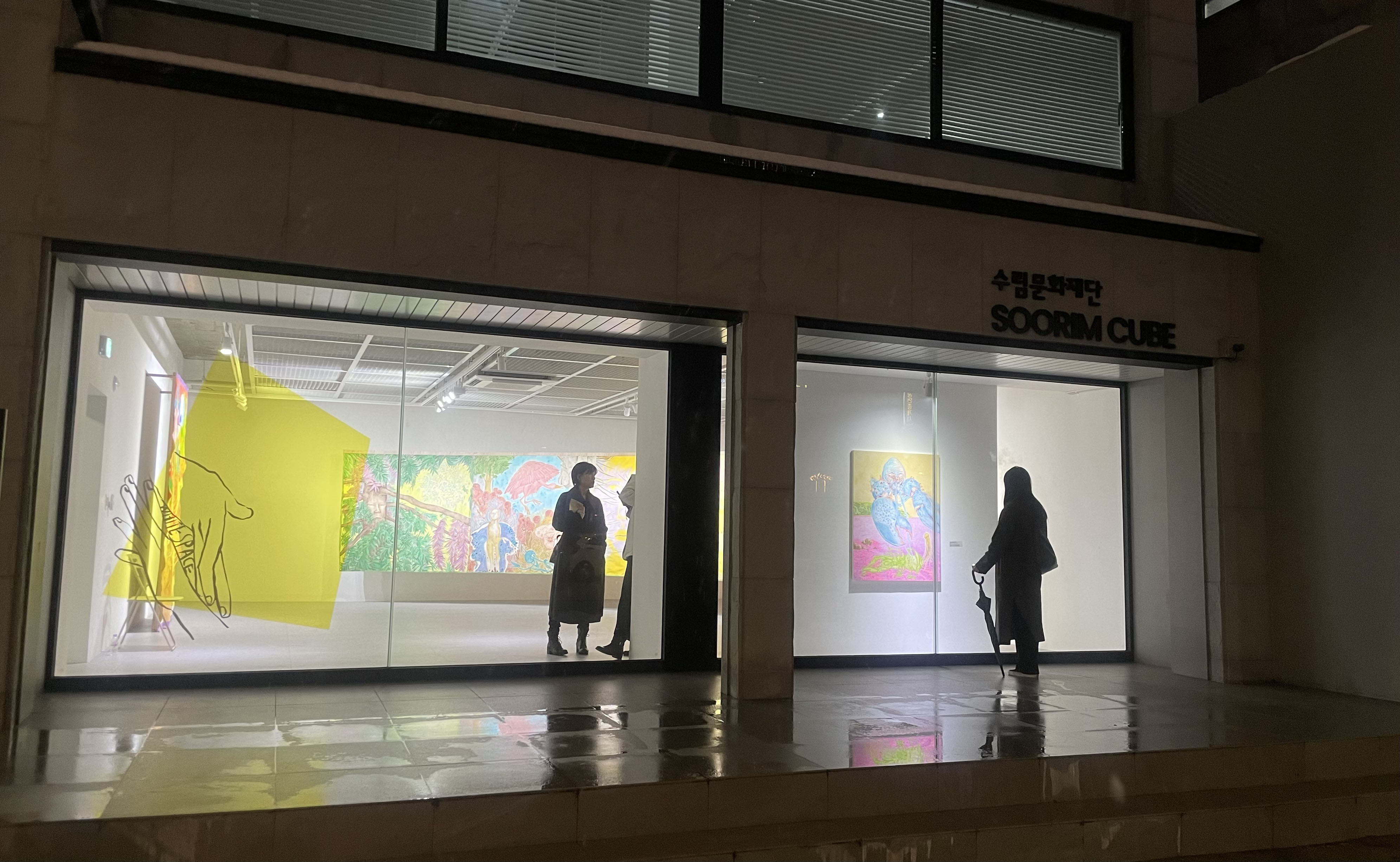 오늘날 모든 영역에서 ‘이동’과 변화가 급격하게 빨라지고 있는 만큼, 우리는 시공간이 바뀌는 순간을 지각하기 어려워졌다. ‘번역’을 어떤 언어가 다른 언어로 ‘이동’하는 시간이라 한다면, 번역 기술은 미래의 다른 언어가 도착하는 시간을 단축시켰다. 우리는 어쩌면 언어들 사이에서 사유할 수 있는 시간을 점차 잃어버리고 있는지도 모른다. ‘화이트 스페이스(White Space)’는 일반적으로 공백을 뜻하는 단어로, 특히 그래픽 디자인에서 의도적으로 비어 있는 여백을 주어 시각적인 조화를 주는 기법을 의미한다. 이번 전시에서 ‘화이트 스페이스’는 관람객이 전시장에서 머무르는 시간을 지속시키는 장소이자, 전시에서 ‘감각’의 방식이 여전히 가능한지 질문하는 공간이다. 전시는 수림큐브 전관에서 진행되며, 1층, 지하, 2층, 테라스, 옥상에서 작품을 만나볼 수 있다.